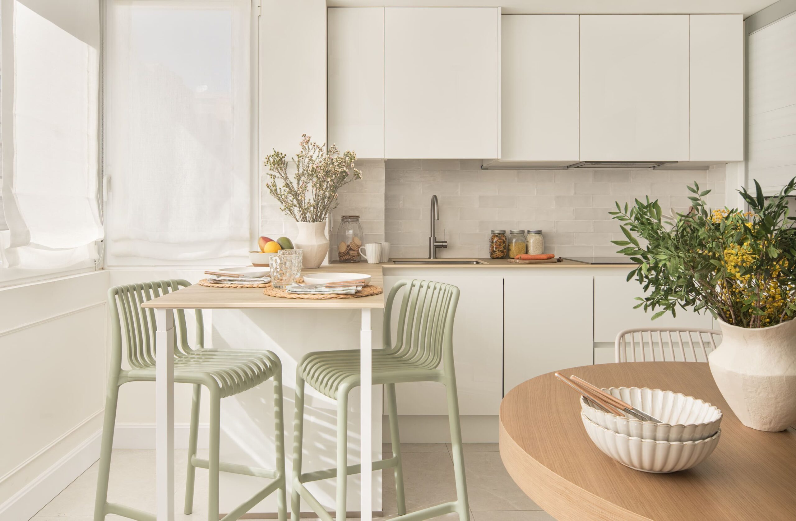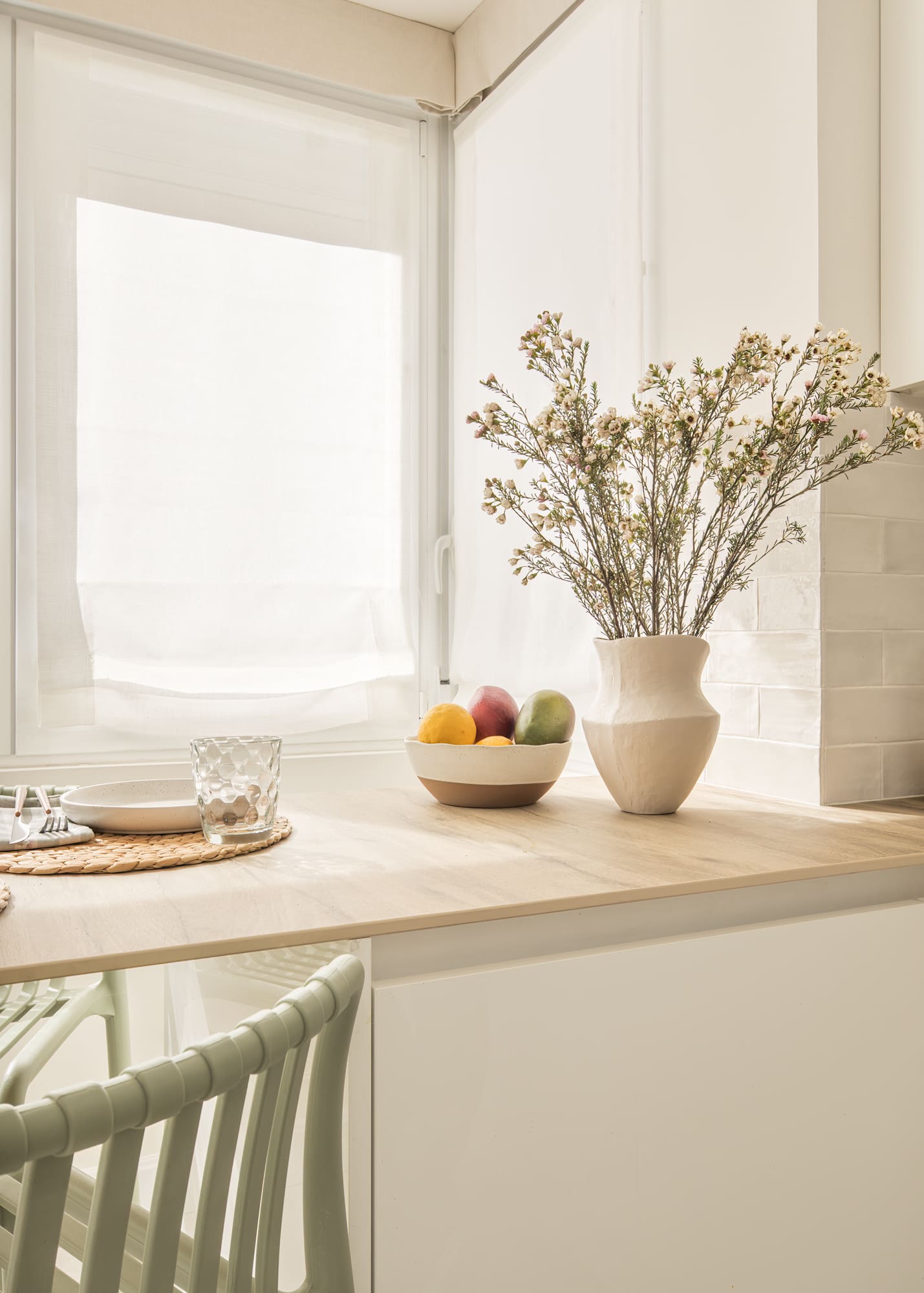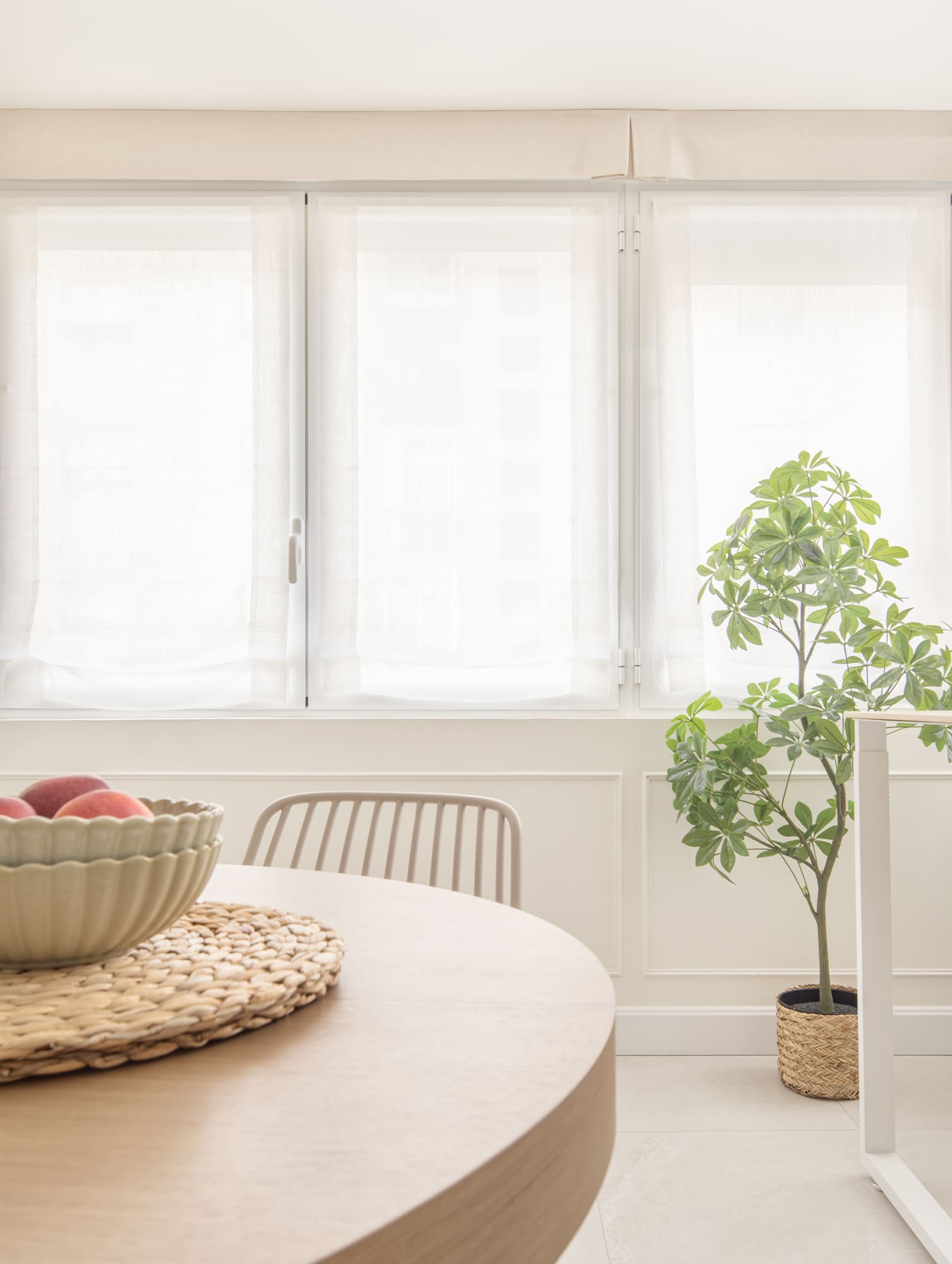 La reforma permitió replantear los espacios y mejorar su funcionamiento diario, creando una base arquitectónica más fluida y luminosa. A partir de ahí, el interiorismo se desarrolló desde una paleta suave y natural, donde los tonos claros, la madera y las texturas delicadas construyen un ambiente acogedor y coherente en toda la vivienda.